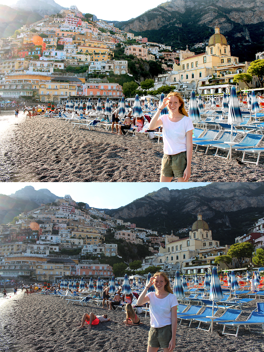 Don’t make the water bluer than how you saw it with your eyes, don’t make your eyes bigger and your hips smaller than they are, and don’t make the beautiful purple flowers turn orange. Authenticity is the most attractive to our eyes. We can sniff out fake tans and untrue colors from a mile away. Avoid changes that alter the true size and color of an object.